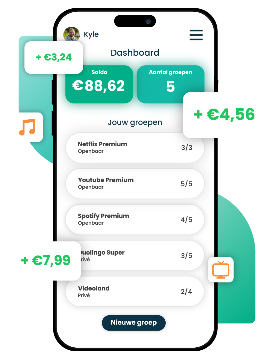 Bespaar op Netflix, Spotify, Disney+ en meer. Start of join een groep in 1 minuut.