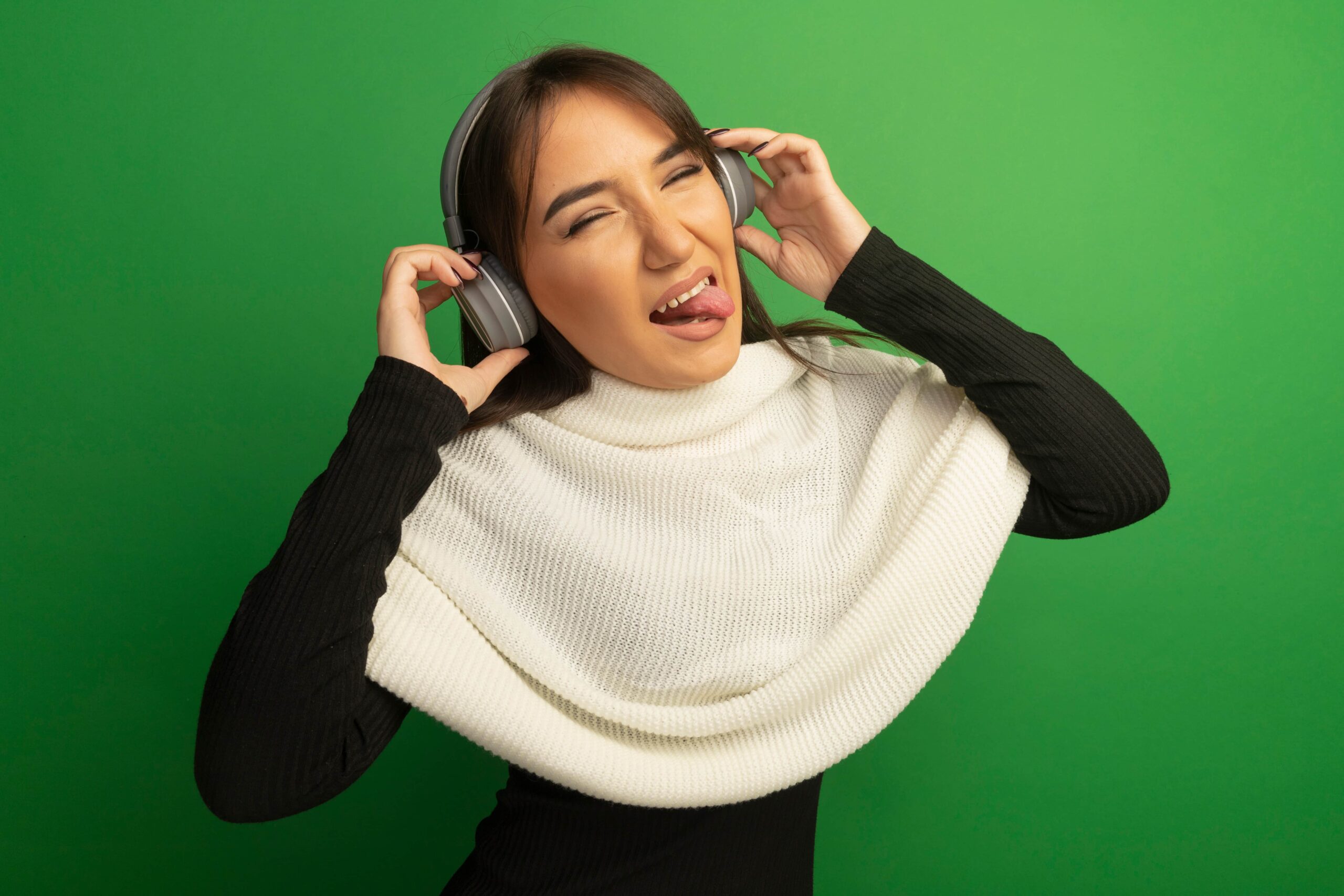 Vrouw luistert ontspannen naar Spotify met koptelefoon